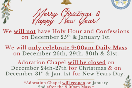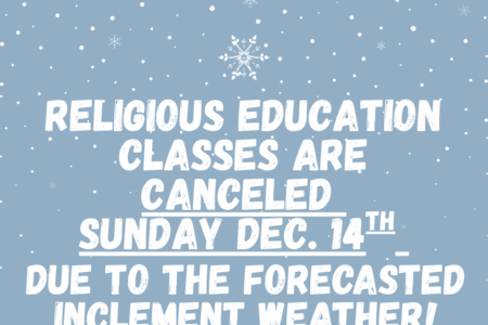 Due to the inclement weather forecasted for early tomorrow morning, Religious Education classes are cancelled Sunday December 14th. We appreciate your…